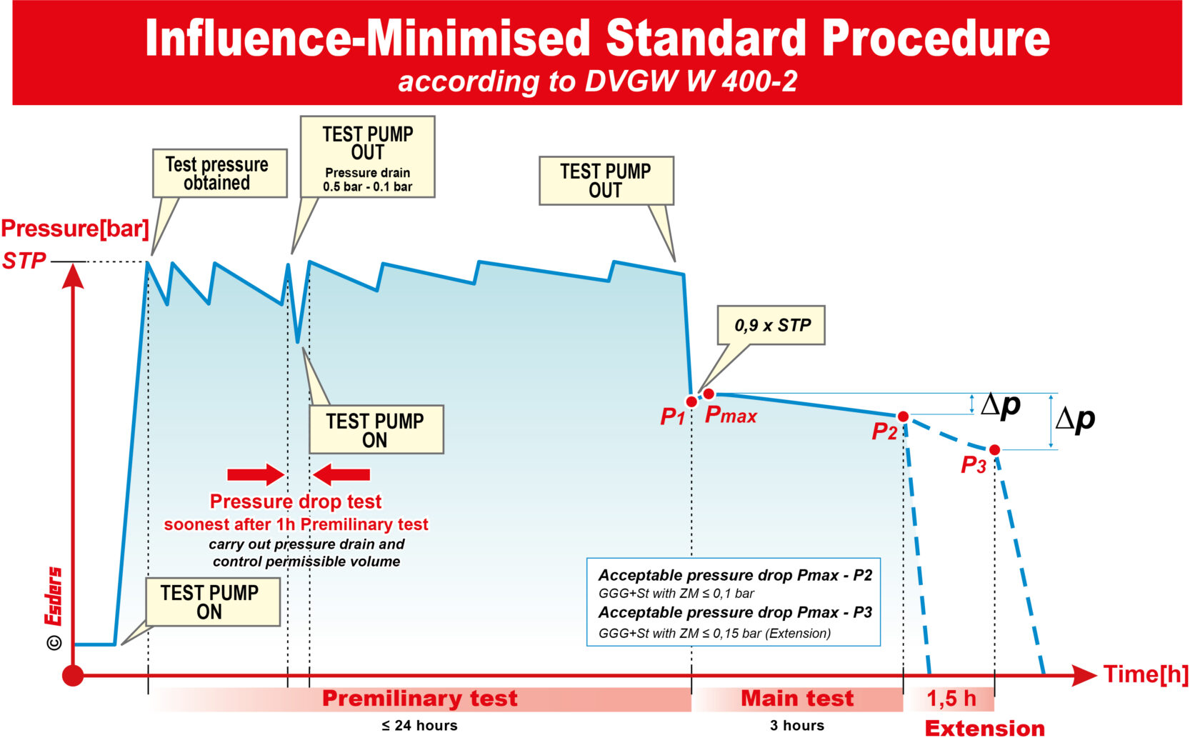 In the contraction procedure, some changes were also introduced with the publication of the updated worksheet W 400-2. In addition to specifications for certain pipe materials, a new limit value was introduced (preliminary test) and another limit value was weakened (main test).